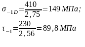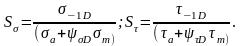 где Sσ и Sτ– коэффициенты запаса по нормальным и касательным напряжением, определяемые по зависимостям
