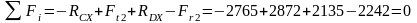 ∑Fi=-Fn1+RАY-Fr1+RBY=-780+355-1158+1583=0