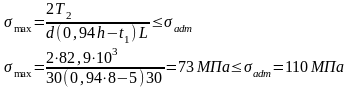 =2·321,7·103/(3,14·2102·14)0,33 МПа≤τadm=0,5МПа