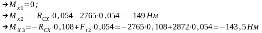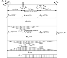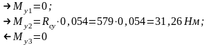Изгибающие моменты в сечениях вала