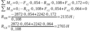 ∑МА=0; -Fn1·0,031+ Fr1·0,054-RBY·0,108 =0;