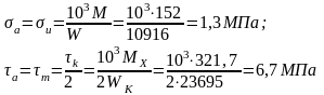 - результирующий изгибающий момент, Н·м; Мк – крутящий момент ( Мк = Т), Н·м; W и Wк – моменты сопротивления сечения вала при изгибе и кручении, мм3