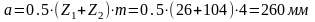 | Межосевое расстояние | | | 250 | |