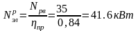 2.4 Расчетная мощность электродвигателя равна: