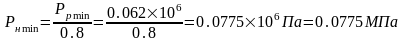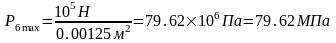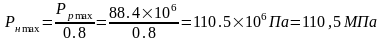 P=0.8×12.5=10МПа