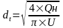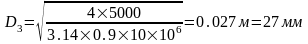 При известном расходе и скорости движения жидкости по трубопроводам диаметр трубопровода определяется по формуле