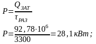 Мощность ТЭНа Р, Вт, определяем из соотношения: