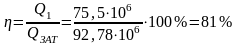 Коэффициент полезного действия котла при нестационарном режиме работы по формуле (25):