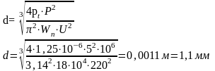 Определяем диаметр проволоки ТЭНа d, м, по формуле: