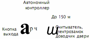 В системе каждому коду поставлена в соответствие информация о разрешении доступа владельца карточки в помещение. На основе сопоставления этой информации контроллер открывает или блокирует проход через дверь, т. е. управляет исполнительным устройством (электрозамком или электрозащелкой), подключенным к контроллеру. Кроме считывателя и исполнительного устройства к контроллеру подключается кнопка выхода, после нажатия на которую можно выйти из помещения, а на дверь устанавливается доводчик.