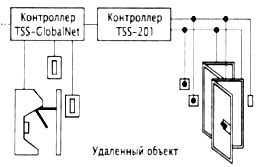 Рис. 12. Структурная схема СКУД с контроллерами TSSGlobalNet и TSS201