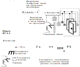 Важной особенностью системы является то, что любой владелец ключа, проникший в здание, минуя проходную (код его ключа не был считан считывателем на входе проходной), не сможет войти ни в одну из контролируемых системой дверей.