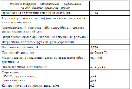 Таблица 1. Технические характеристики системы управлениидоступом и охранной сигнализацией «Фокус-ОПД»