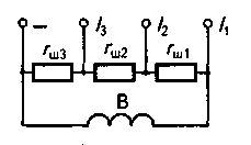 Тому ці прилади завжди мають внутрішній шунт, що пропускає через себе більшу частину струму. Коло ж рамки вимірювального механізму тут використано як мілівольтметр, що вимірює падіння напруги на цьому шунті, пропорційне величині струму, який проходить через шунт. Шкалу такого приладу градуюють у амперах, якщо прилад має одну границю виміру. Але часто магнітоелектричні амперметри виготовляють з універсальними шунтами, придатними для користування з декількома границями вимірів. У цьому разі шкалу градуюють лише неіменованими поділками. Схему такого амперметра наведено на рис. 2.