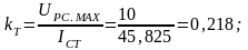 Величину коефіцієнта підсилення датчика струму одержимо з відношення: