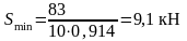 Таким образом, Smin = 9,1кН > 0,30 кН, т. е. условие выполняется с запасом: