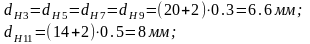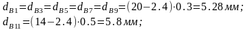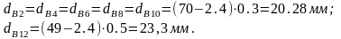 Определим наружный и внутренний диаметры шестерёнок и зубчатых колёс по формулам [2]: