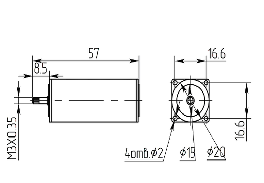 Габаритные и установочные размеры двигателя ДПР-32-Ф5