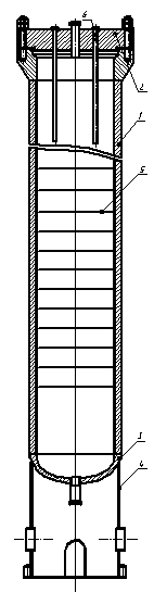 1-корпус; 2- крышка плоская; 3-днище эллиптическое; 4-опора; 5-тарелки ситчатые; 6-термопара