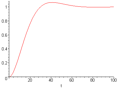 . Так як відношення постійних часу менше 2, то робимо висновок, що перехідний процес еквівалентного об'єкта керування матиме коливальний характер. Тому розрахунок перехідного процесу виконаємо за формулою