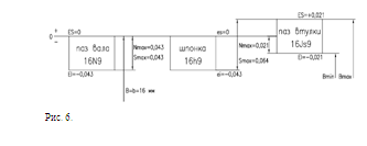 Наибольший зазор: Smax = Dmax – dmin = 16,0 – 15,957 = 0,043 мм