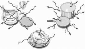 То же самое происходит и при приготовлении пищи на традиционной плите, но в этом случае возбуждение молекул воды медленно передается от наружных слоев к внутренним.