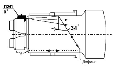 УЗК ближней шейки и предподступичной части оси выполняют поочередно с каждого торца оси прямым или комбинированным ПЭП (частотой 2,5 МГЦ, угол ввода 0°).
