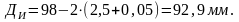 - диаметр цилиндрической поверхности после покрытия с учётом припуска на обработку, см,