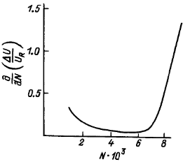 Представляется, что подобный вид зависимости Vt (n) может быть полезен для объяснения известного в теории надежности [11] U – образного характера зависимости интенсивности отказов (их числа в единицу времени) от времени эксплуатации t. Действительно, U – образной является показанная на рис. 7. зависимость dVt /dn от n (очевидно, n – t), построенная по данным рис 6: в терминах теории надежности, ее начальный этап соответствует приработочным отказам, стадия медленного спада СУЗ – периоду внезапных отказов (нормальная эксплуатация), а быстрый спад СУЗ сигнализирует о переходе к наиболее опасному периоду износовых отказов.