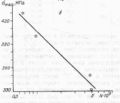 Рис. 5. Кривая усталости для исследованной стали с коэффициентом асимметрии R=0 (б) (N – количество циклов)