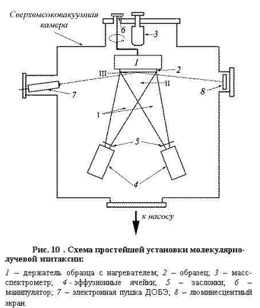 Ниже на рис.10. показана упрощенная схема ростовой камеры МЛЭ.