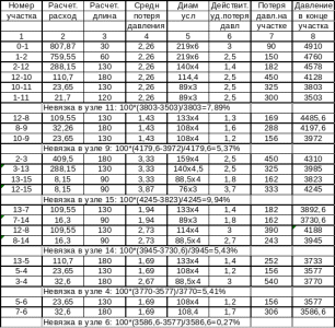 Все расчеты по определению диаметров участков газопровода низкого давления сведем в таблицу.