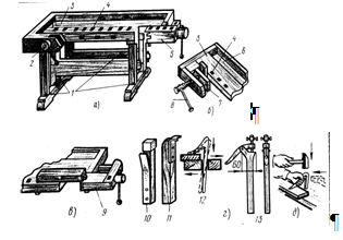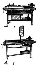 Для обработки оконные створки, дверные полотна, форточки укладывают между двумя гребенками и зажимают задними тисками. Основание делают из древесины хвойных пород,