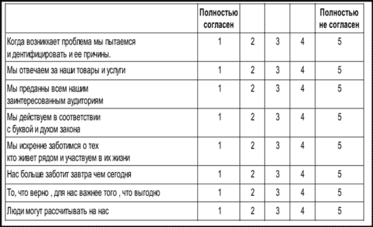 | Практические советы №1 Контрольные точки для идентификации репутации В книге “Создание доброго имени вашей компании” Дэвис Янг определяет восемь контрольных точек, которые компания может использовать для анализа своей репутации. Он рекомендует компаниям задавать себе эти вопросы, честно отвечать на них и затем подсчитывать очки. Янг считает, что компания должна набрать по этому тесту по крайней мере 35 очков из возможных 40 перед тем, как она сможет организовывать позитивные и активные коммуникации. Инструкция для подсчета очков: обведите кружком ваши ответы на восемь вопросов. Сложите очки. Возможная минимальная сумма составляет 8 очков, а максимальная — 40. |