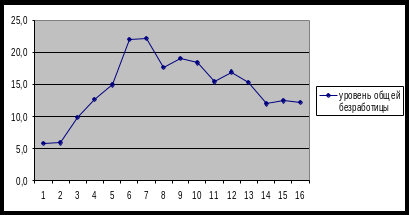 Рис. 8.Уровень общей безработицы при прогнозировании «методом абсолютного прироста»
