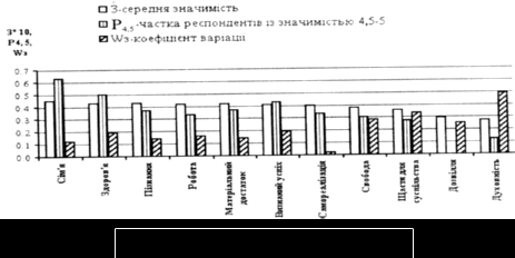 Спочатку розглянемо ієрархію життєвих цінностей. Як приклад на рис. 1. наведені дані, отримані під час опитування професорсько-викладацького складу вузу. Значимість визначалася за 5-бальною шкалою).