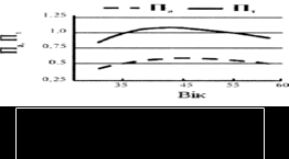 На цінності людини чималий вплив здійснює її вік. Високі цінності особистісного розвитку зазвичай на початку життя зростають, досягають максимуму, а потім тією чи іншою мірою знижуються (рис. 3). Так, для викладачів вузів цей максимум відповідав 45 рокам.