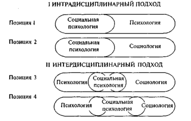 Якщо скористатися пропозицією американських соціальних психологів Макдевіда і Харрарі (а питання про місце соціальної психології в системі наук обговорюється не менше активний і в американській літературі), то всі вказані позиції можна звести до двох підходів: інтрадисциплінарному і інтердисциплінарному. Іншими словами, місце соціальної психології можна прагнути відшукати всередині однієї з "батьківських" дисциплін або на межах між ними.
