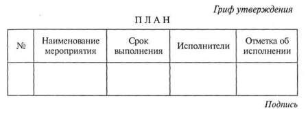 Закон не предусматривает обязательной формы плана, но на практике применяется следующая форма.