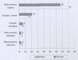 Рис. 1.4. Как Вы считаете, в наше время важно или неважно иметь высшее образование? (Распределение ответов в семьях с детьми; в процентах) [32, с.46]