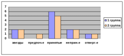 В одной из групп респонденты включили в свой состав членов -воспитателей, причем они изобразили их в виде больших желтых кружков. Эти данные свидетельствует о том, что дети считают воспитателей важными членами своей группы. Яркие цвета - основа выбранного цвета, дети избегают темных цветов. Таким образом, можно сделать вывод, что внутри группы хорошие, теплые, эмоциональные взаимоотношения.