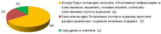 Две трети наших сограждан считают, что всегда будут люди, готовые платить за качественную аналитику и покупать хорошие газеты и журналы (66%). Главное, чтобы не возникало желание «проплачивать» аналитичекие статьи и материалы, тогда, на мой взгляд, в таком открытом и действительно гласном обществе можно будет свести на нет не только предпосылки к коррупции и различного рода спекуляции, возможно будет достигнуть истинно демократического общества в его идеальном нашем представлении. Не даром существует длительная, можно сказать, ставшая уже классической традиция анализа соотношения общественного мнения и демократии. В рамках этой традиции в принципе имеет место постановка проблемы о возможных типах отношений общественного мнения и государства. При этом, как правило, рассматриваются простые модели, противопоставляющие демократию и недемократические типы, в которых общественное мнение исключено из принятия властных решений, подавляется и т.п.