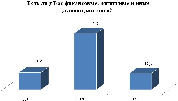 62,6% респондентов признаются в том, что не имеют условий для того, чтобы взять в свою семью на воспитание приёмного ребёнка.
