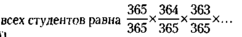 И далее для всех студентов группы – в том же духе. Зададим себе такой вопрос: а какова вероятность того, что и у первого, и у второго, и у третьего, и у всех остальных студентов дни рождения не совпадут? Вероятности таких событий находят с помощью умножения.
