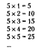 Перед нами оставшаяся часть таблицы умножения на 5: