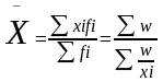 Для определения средней арифметической необходимо иметь ряд вариантов и частот, то есть значения x и f. В некоторых случаях известны индивидуальные значения x и произведение xf, а частоты f неизвестны. Чтобы рассчитать среднюю, обозначим произведение w = x*f, отсюда: