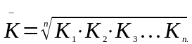 Средняя геометрическая равна корню степени n из произведения коэффициентов роста, характеризующих отношение величины каждого последующего периода к величине предыдущего.