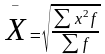 В тех случаях, когда осреднению подлежат величины, выраженные в виде квадратных функций, применяется средняя квадратическая. Средняя квадратическая рассчитывается по формуле: