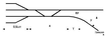 Необходимая длина прямой горизонтальной площадки для размещения станции «Входная» включает длину парка станции (Lпо) и дополнительное расстояние «а» для развития горловин и определяется по формуле
