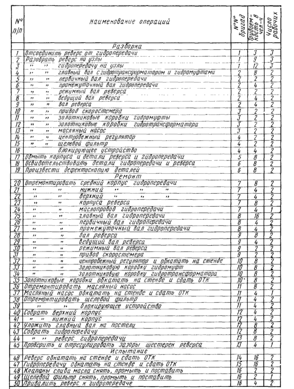 10. Расчет трудоемкости ремонта механизма реверса